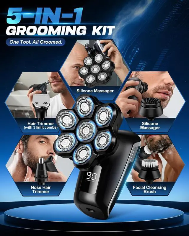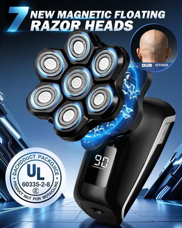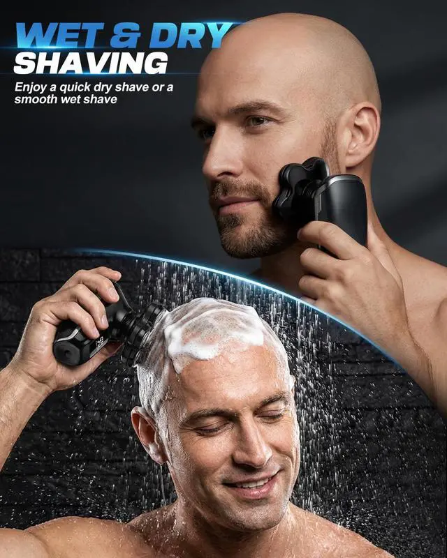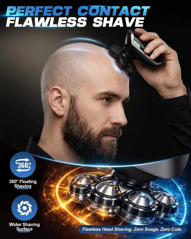 Faster, Cleaner Bald Head Shave: Upgraded 7D floating blades cover more surface for a quicker bald head shave with fewer passes. This head shaver for bald men glides smoothly over scalp and jaw without pullingperfect for daily head shaving and a smooth bald look.