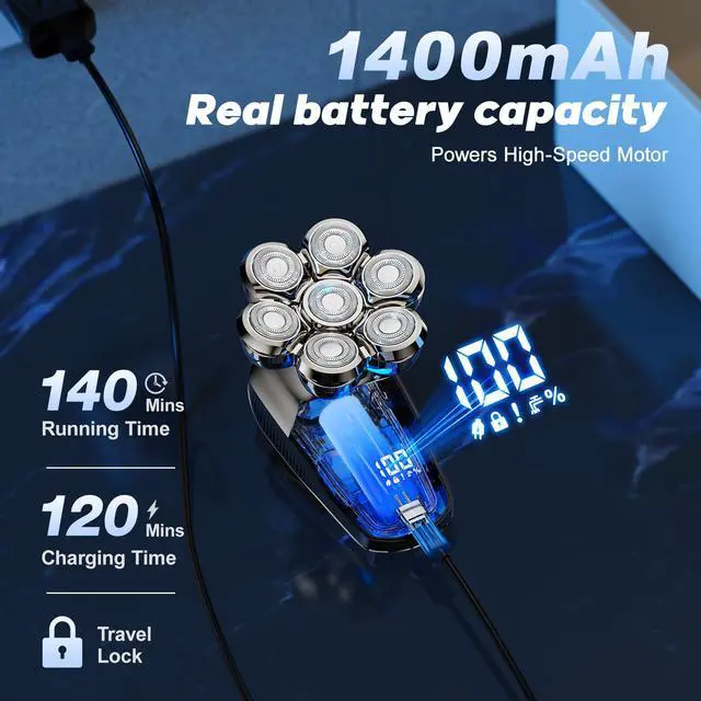 LED Display & Type-C Fast Charge: Never guess your battery status again, the LED display shows real-time power levels. The bald head shaver can be fully charged in 2hrs via power banks, cars, or laptops . The travel lock prevents accidental activation, making this electric shaver for men the ultimate travel companion.