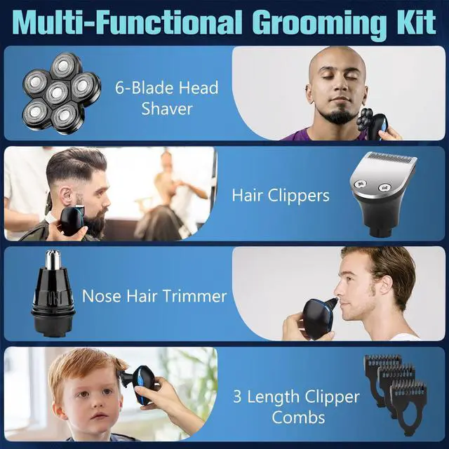 Head shavers for men has 6D intelligent floating shaver head, which allows you quickly shave off unwanted beard and hair. The upgraded electric shaver head automatically fits the contours of your face and neck, smoothly and gently across your face, bringing you a fresh and comfortable shaving experience.