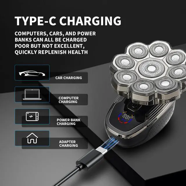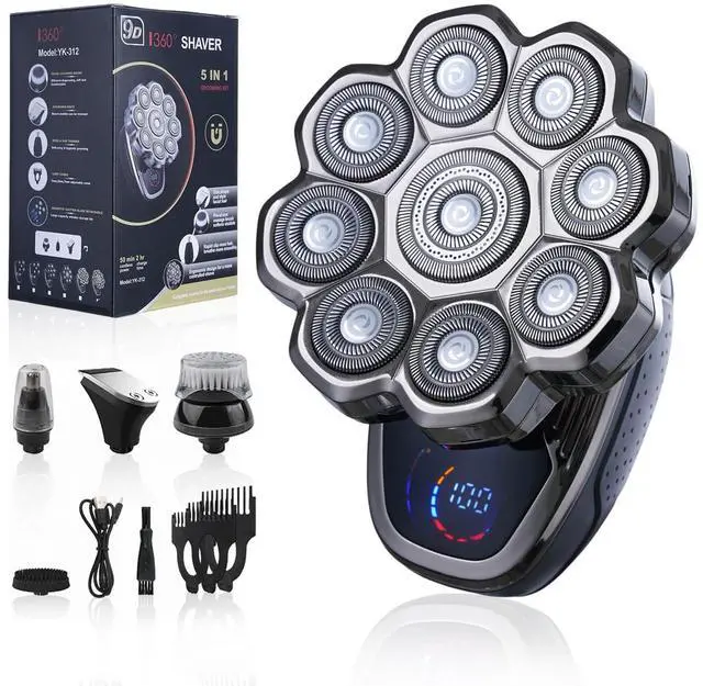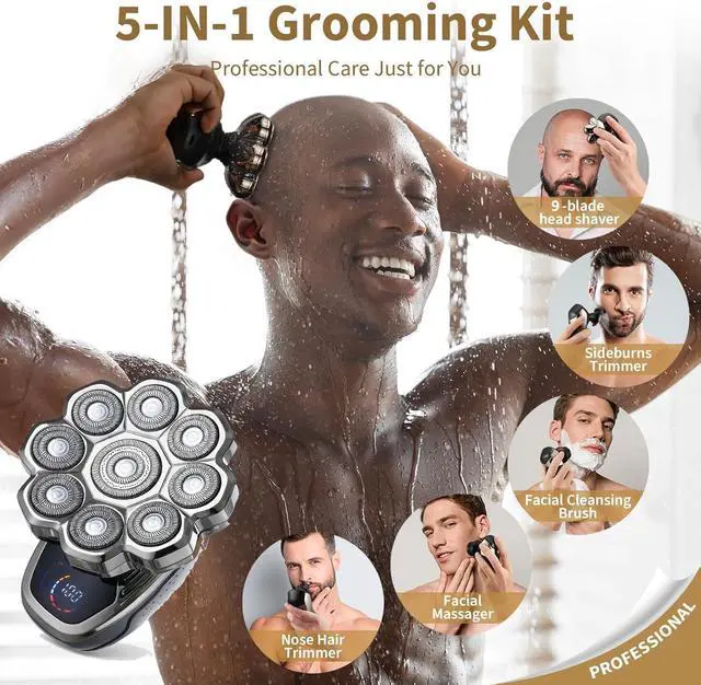 • 9D Baldiepro Floating Head : Upgraded 5-in-1 9D Floating Head, 60 seconds quick shaving bald head ,experience the ultimate shave with 9 ultra-sharp blades that capture more hairs in a single pass, fits the scalp curvature, no pulling feelingreducing skin irritation and providing a smooth, comfortable shave every time,suitable for daily use.