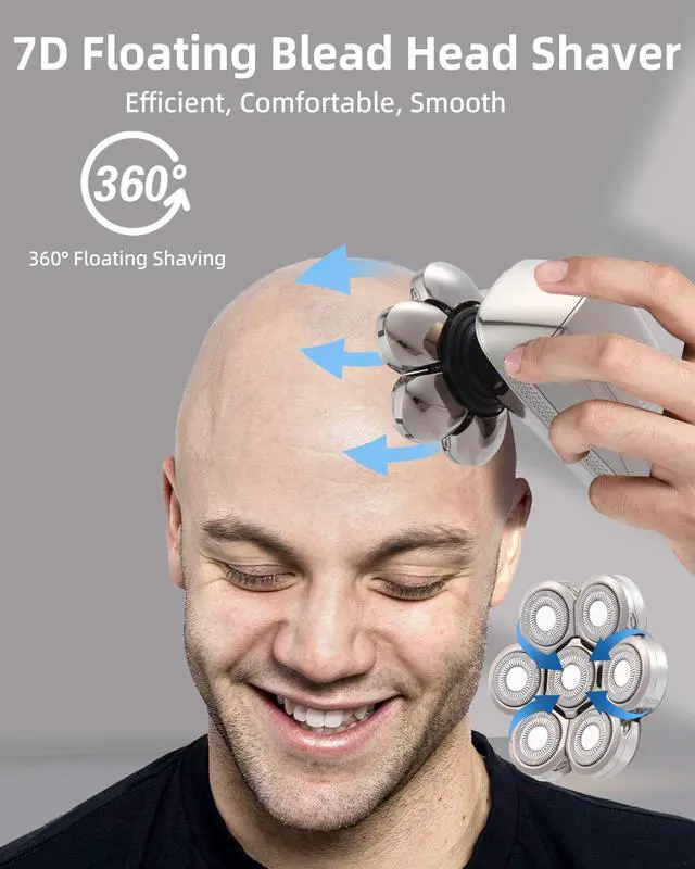 7D Head ShaverMen's bald head shaver with a high-speed motor and flexible 7-way floating head that adapt to different head. Its double-layer blades efficiently capture hair, while the smart sensor system prevents hair pinching and reduces irritation