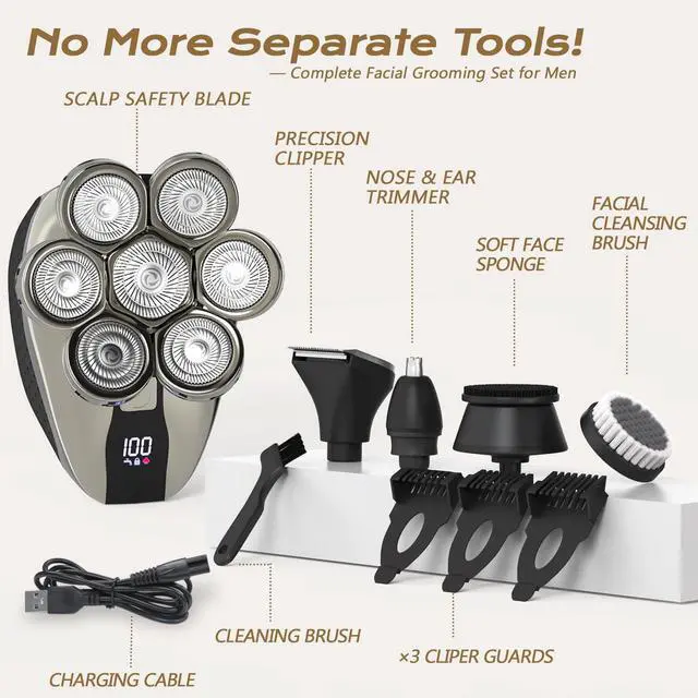 This 7D Head Shavers for Bald Men adopts IPX7 Waterproof design and is equipped with an LED screen that can display the remaining power and 5 shaving heads. It can meet your various daily shaving needs. It is gentle and non-irritating when shaving, and is definitely worth owning one.