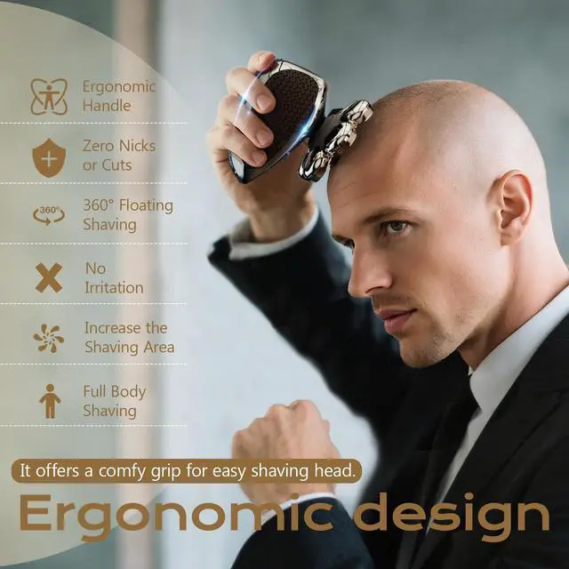 The designed handle conforms to ergonomics and can perfectly fit the palm, making it less prone to fatigue when held for a long time. Easy to reach various areas of the head, avoiding problems such as hair clipping and skin scratching during shaving, designed specifically for men who enjoy shaving their heads and are tired of old-fashioned razors.