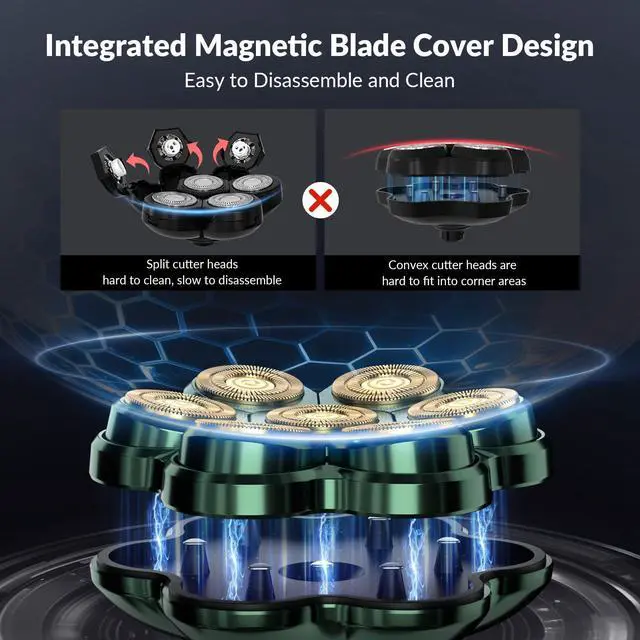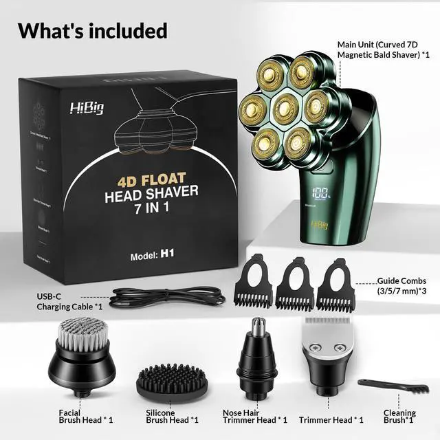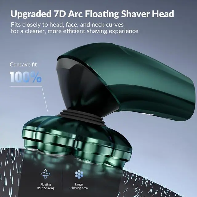 Our cutting-edge 7D curved blade system effortlessly adapts to every contour of your head and face, delivering a close, smooth shave without irritation - no barber, no hassle.