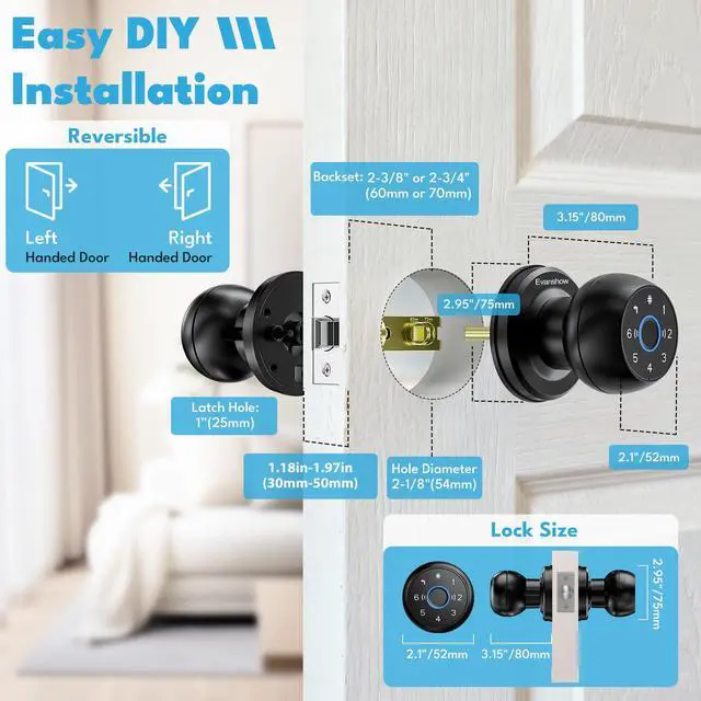 Easy Installation: No drilling/wiring! This door knob is easy to install on 1.18"-1.97" thick wooden doors (left/right swing) without professional help
