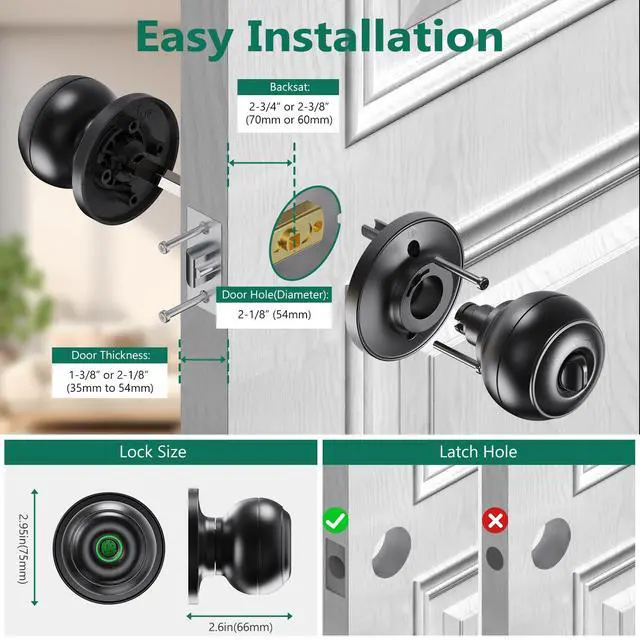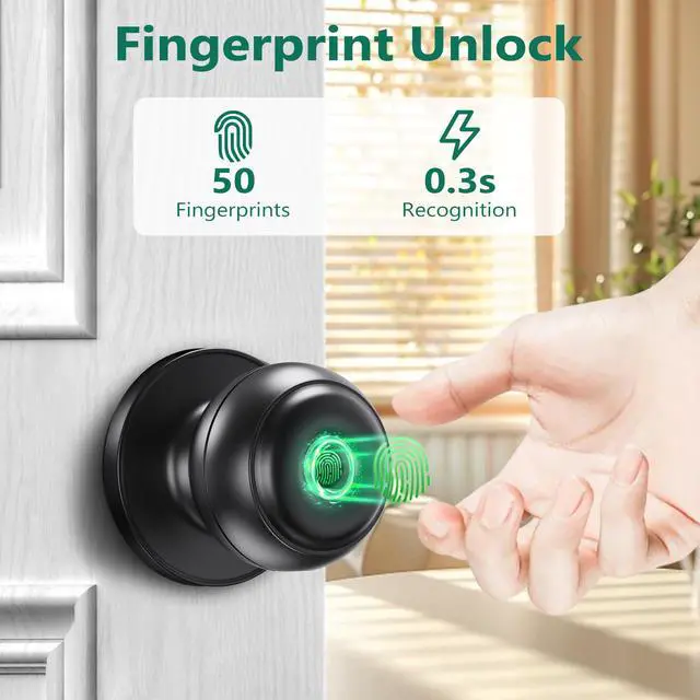 Fingerprint Door Knob: Smart door knob stores up to 50pcs fingerprint users, equiped with advanced fingerprint recognition technology, just one touch unlock, for emergency, also come with 2pcs back-up keys