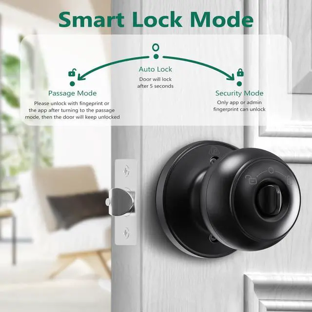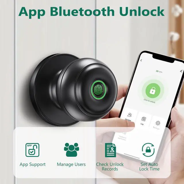 App Control: Fingerprint door lock also a buletooth door knob, you can unlock the door from your app, App also support manage the users, add or delete users, share E-key and view access log, your home and property are better protected
