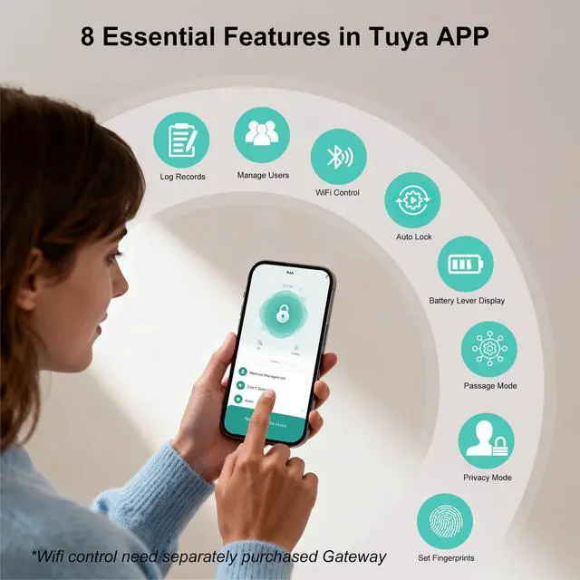 Smart App Management and Remote ControlManage fingerprints, check unlock records, set auto-lock, passage mode, and privacy modes via APP, this thumbprint door knob provides a complimentary application that meets all your security need. Note: APP control is limited to the Bluetooth range.