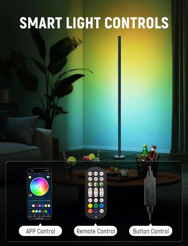 Corner Floor Lamp Smart RGB LED Corner Lamp with Music Sync, App and Remote Control Color Changing Ambience Light, Timing for Living Room, Bedroom, Gaming Room