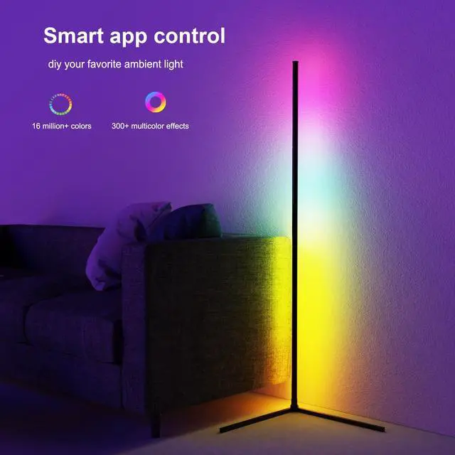DIY various lighting atmospheres This cnrner floor lamp has 16 million colors and 213 light dynamic modes, you can have very cool ambient lighting in different usage scenarios such as living room, bedroom, game room and partysuitable for Christmas gifts.