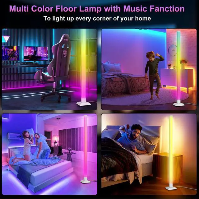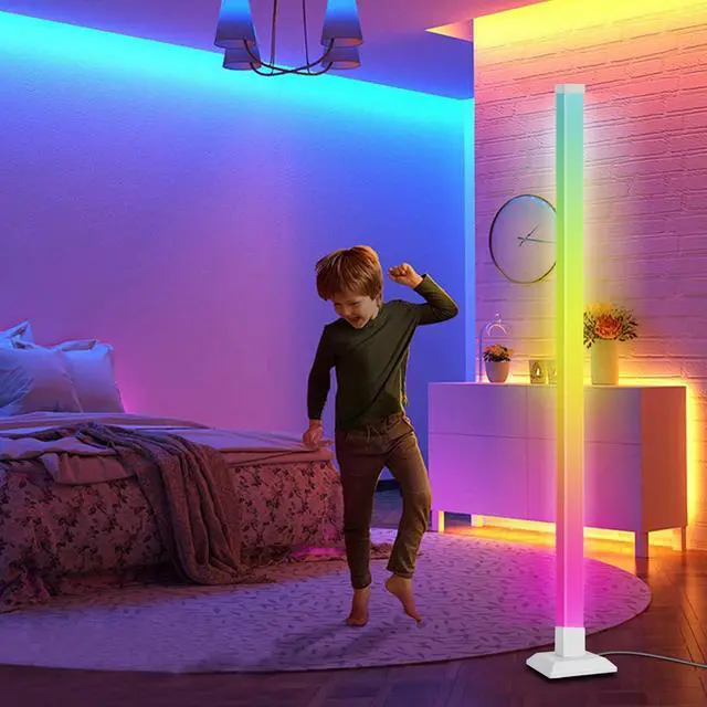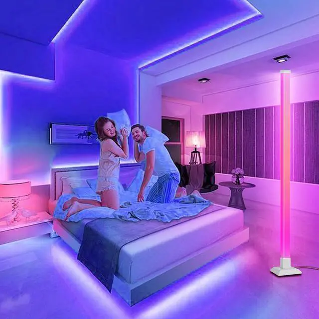 Dynamic RGB+IC: 59" floor lamp features built-in IC RGB 5050SMD LED beads with 16 million dimmable colours and have a memory pattern. Use the included remote control to adjust a variety of functions. The fun floor lamp have sad blue, romantic purple, passionate red, warm yellow, and splendid flowing colors.You can set your own corner light colours according to the usage scenarios, making your home and life more colourful