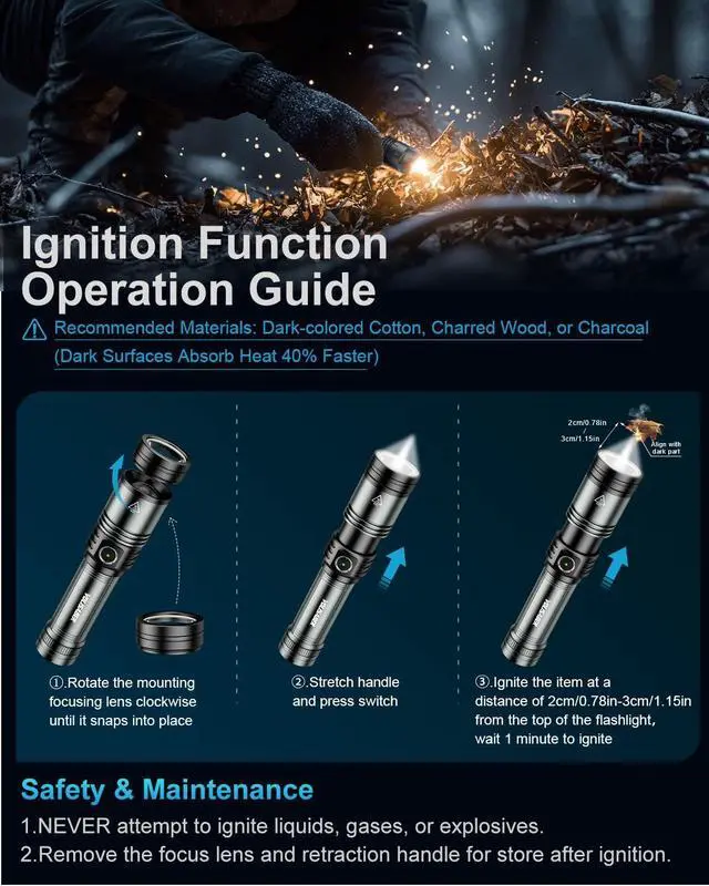 Spot targets over half a mile away (3280 ft) in focused beam mode. Built for patrols, personal security, emergencies, camping, and backcountry exploration
