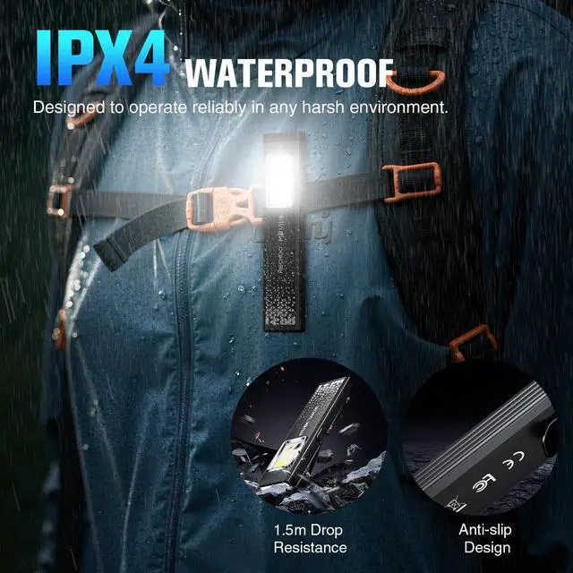Compact & Magnetic: Designed for EDC, this pocket flashlight (4.4"×0.98"×0.35", 37g) features a magnetic base 3x stronger than typical flashlights, securing firmly to metal surfaces like car hoods and tools for hands-free use. The sturdy clip allows this flat small flashlight to attach easily to belts, backpacks, or pocketsgiving you complete portability wherever you go
