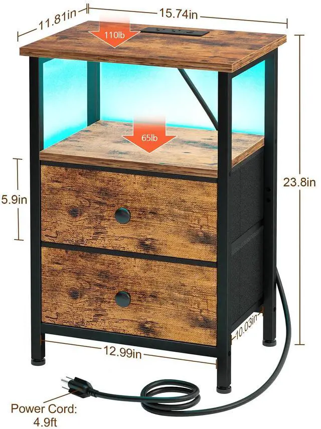 | Packing List | Nightstand x 1; Charging Station x 1; Installation Instruction x 1; Install Toolkit x 1;Spare Parts Kit x 1; LED Strip Light x 1 |