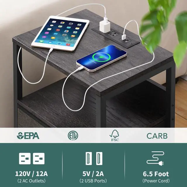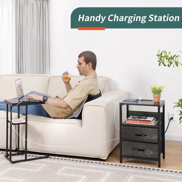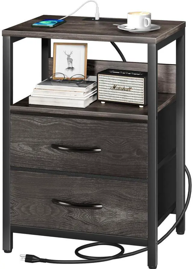 2 large fabric drawers are made of durable materials, ensuring easy and quiet slide-in and out. The night stand with charging station is a better fit for odds and ends, such as keys, controllers or charger cables to save you from the mess.