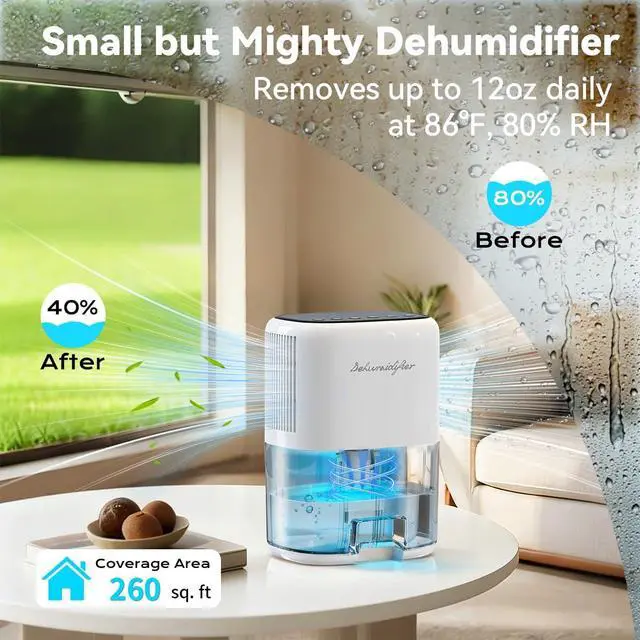 Fits anywhere with its compact 6.56"x4.94"x9.29" frame. Easily move this portable unit between rooms, closets, or small spaces for targeted moisture control exactly where needed.