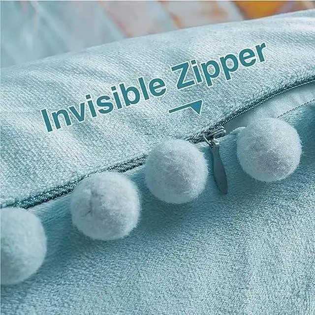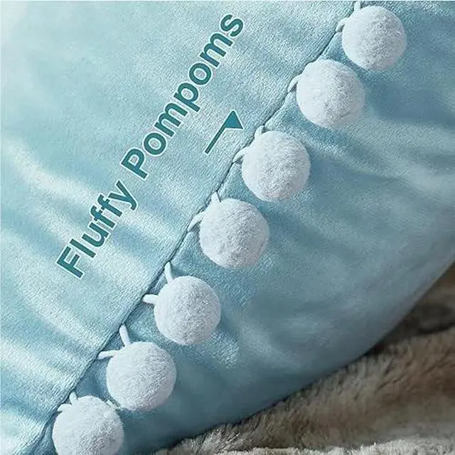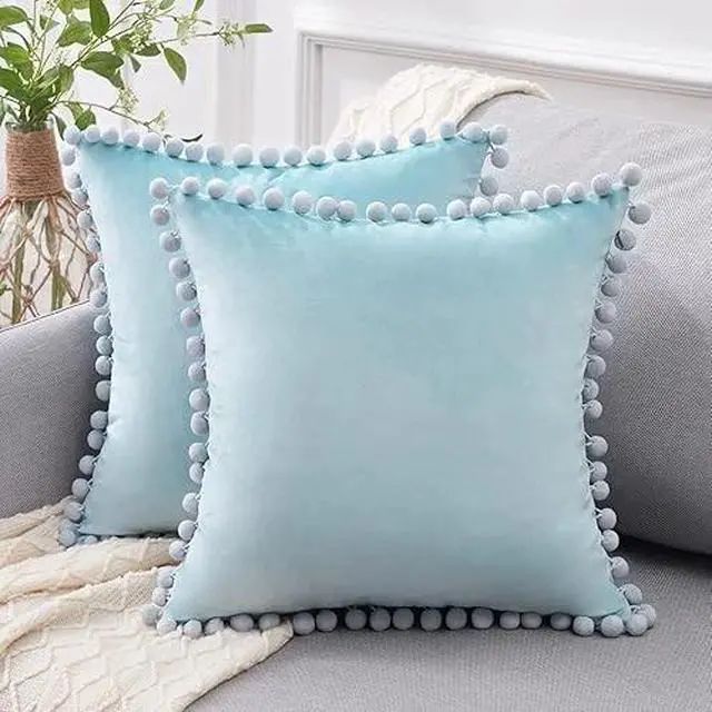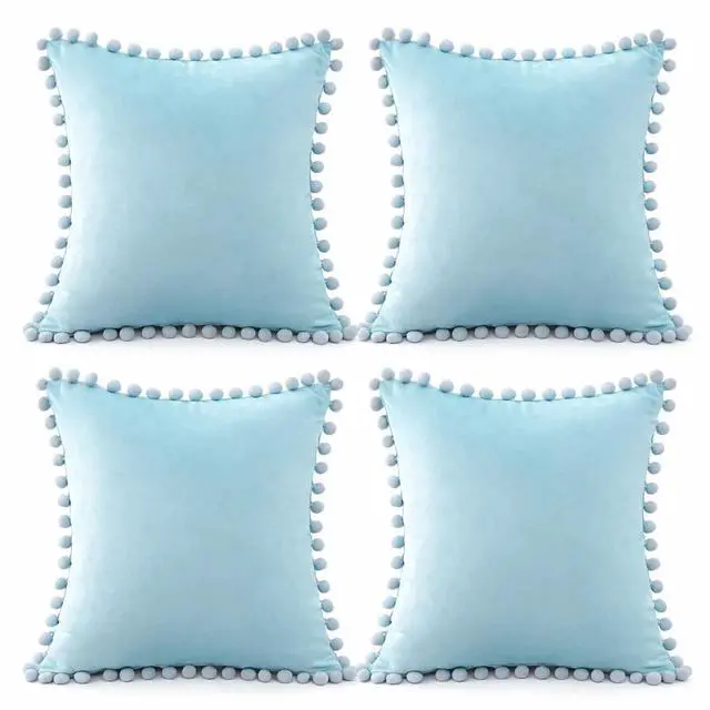 Topfinel Aqua Blue Velvet Throw Pillow Covers 18x18 Set of 4 with Pom Poms