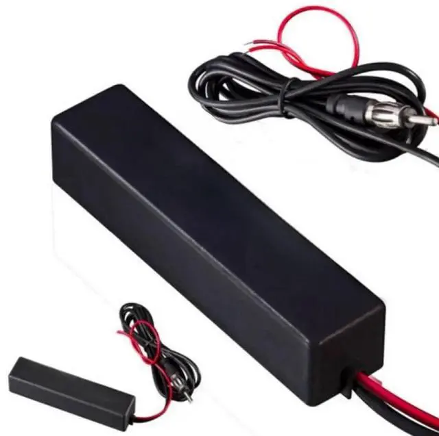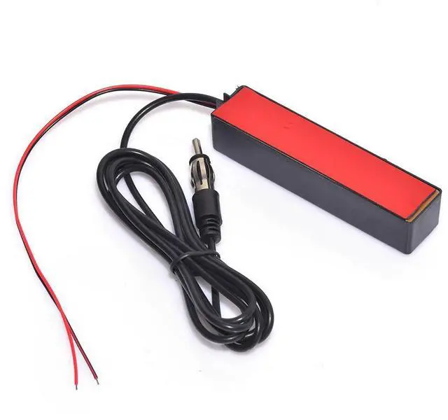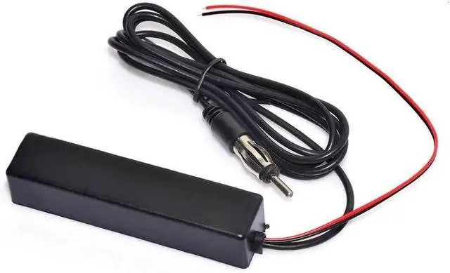 Description:Get rid of your annoying stock antenna that makes your motorcycle look uncool. Just peel and stick this AM/FM hidden amplified antenna in a concealed (out of sight) area on any motorcycle. Your antenna kit will come with a 9.7cm inch long by 2.4cm thick antenna housing that is sealed against moisture and dirt, 63inch/160cm antenna cable and 12VDC wire that is plenty long for the hard to reach areas. Can be mounted anywhere on the bike such as in your fairing or behind your side covers (or in your tour pak if you have a harley), does not have to be grounded (radio must be properly grounded though). Installation is simple--just peel and stick!! Run antenna cable to back of radio, run power supply wire to a 12V power source. It is amplified so it will provide a stronger signal than your stock whip antenna. Features:Hidden amplified antenna design for direct replacementExcellent solution for motorcycles, cars, street rods, show cars, hot rods, classics, boats, campers, golf cartsMultiple mounting optionsNo drilling or grounding required(radio must be grounded properly)Designed for optimum AM/FM reception Cover conversing all broadcast radio, Covering all AM/FM broadcast radioFor best performance mount antenna to the top inside of the windshieldAntenna body is hook and loop with adhesive backed Specification:Input : thoroughfare / output impedance : 750hm77" power and antenna cable are included with the kitComes with 3M self-adhesive pre-applied on the back of cableCable: 63inch/160cm approx.