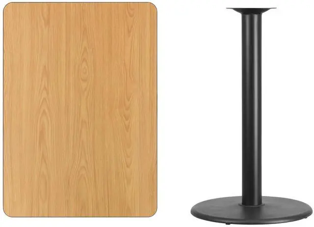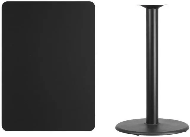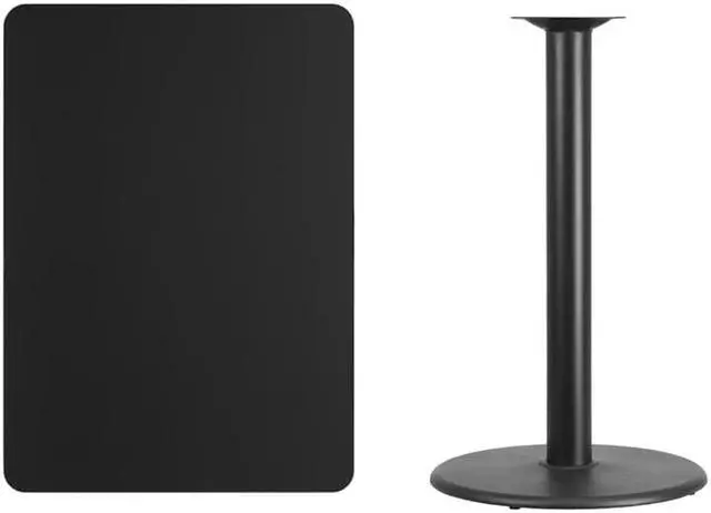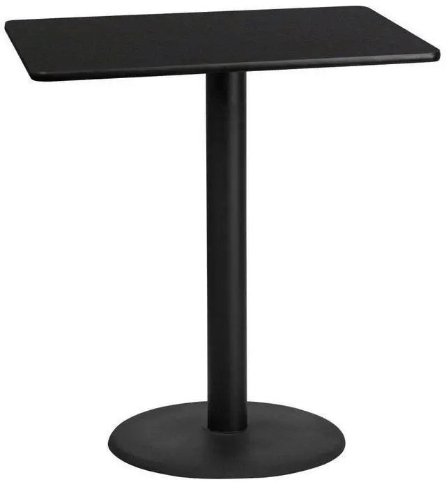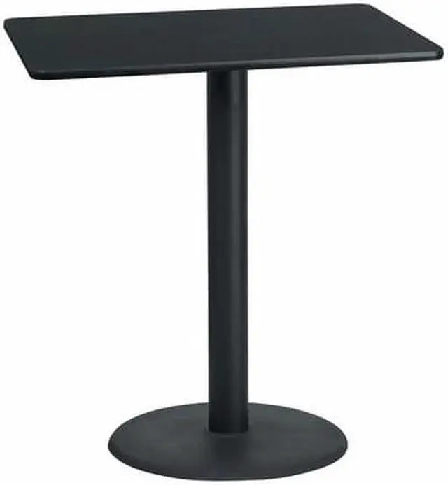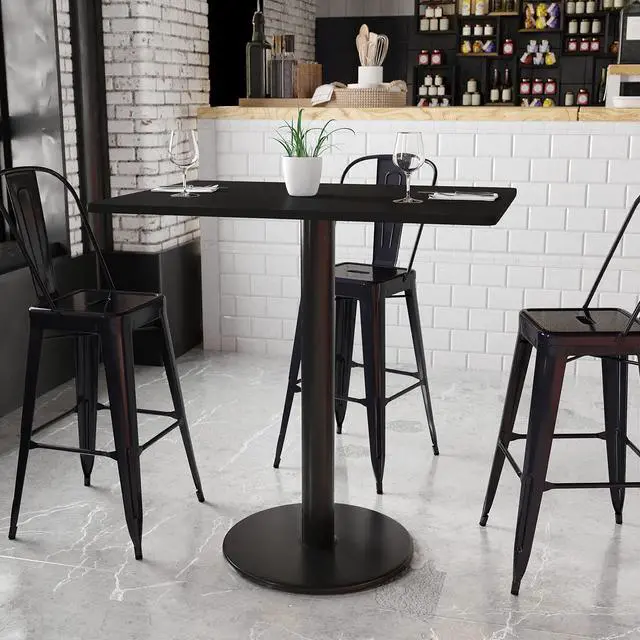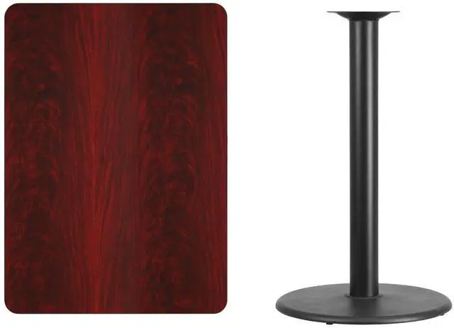 Complete your restaurant, break room or cafeteria with this bar height table top and base configuration. This set is designed for commercial use to withstand the daily rigors in the hospitality industry. This set will also make a great option for your home as a dining table or in the rec room. The reversible black or mahogany top allows you to choose your color of choice and then affix to the base. Surface is heat, scratch and moisture resistant. Use a mild detergent and water, dry clean to keep your tables spotless. Whether you are just starting your business or upgrading your furniture this bar table set will complete the look.