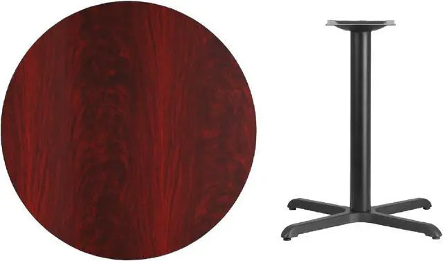 Complete the design of your restaurant, break room or cafeteria with this table top and base configuration. This set is designed for commercial use to withstand the daily rigors in the hospitality industry. This set will also make a great option for your home as a dining table or in the rec room. The reversible mahogany or black top allows you to make your color choice and then affix to the base. The surface is heat, scratch and moisture resistant with black T-mold protective edging. Easily clean up spills with a neutral detergent and water to keep your tables looking great.