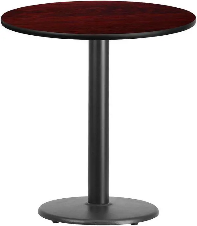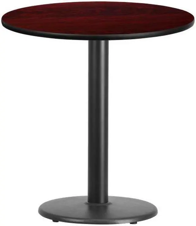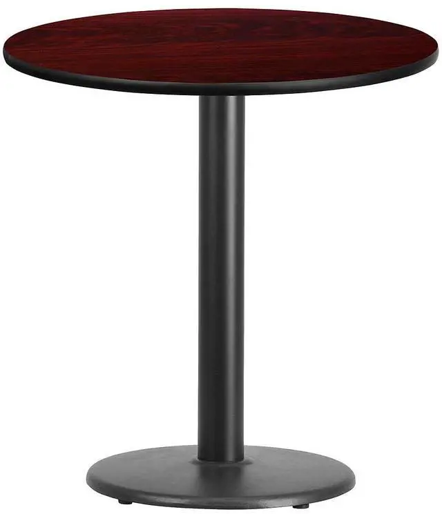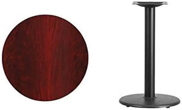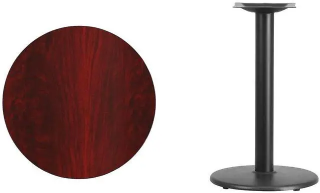 Complete your restaurant, break room or cafeteria with this table top and base configuration.This set is designed for commercial use to withstand the daily rigors in the hospitality industry. This set will also make a great option for your home as a dining table or in the rec room. The reversible black or mahogany top allows you to choose your color of choice and then affix to the base. Surface is heat, scratch and moisture resistant. Use a mild detergent and water, dry clean to keep your tables spotless.Whether you are just starting your business or upgrading your furniture this table set will complete the look.