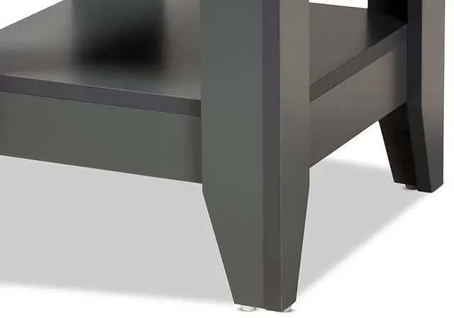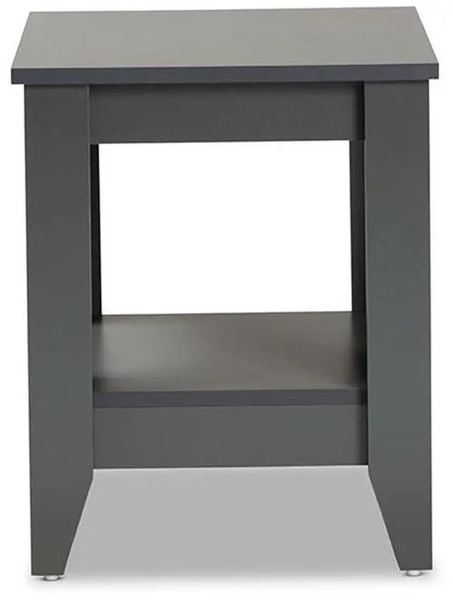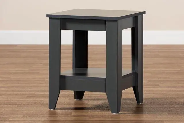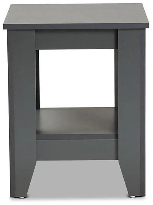 A clean, compact design makes the Audra end table a refined addition to any space. Made in Malaysia, the Audra is constructed from wood and features a neutral grey finish that complements many interior color palettes. The square tabletop acts as the perfect pedestal for decorations, while the lower shelf can be used for storage. Requiring assembly, the Audra features tapered feet fitted with floor protector pads for elegance and practicality. Simple yet graceful, the Audra end table acts as the perfect accent piece within the modern home.