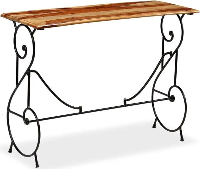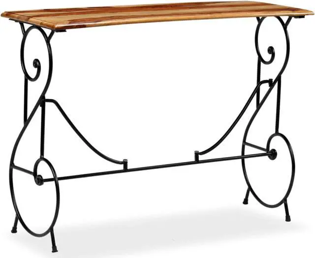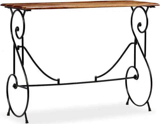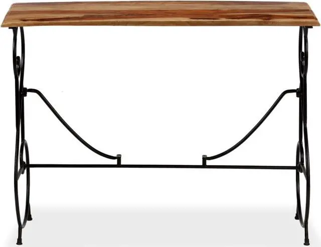 This solid Acacia wood console table is a beautiful yet practical piece, perfect for any indoor area looking for a blend of style and function. Its lovely brown finish paired with a sleek black metal frame gives off a contemporary vibe, making it an awesome choice for entryways, hallways, or living rooms, merging seamlessly with both traditional and industrial styles.