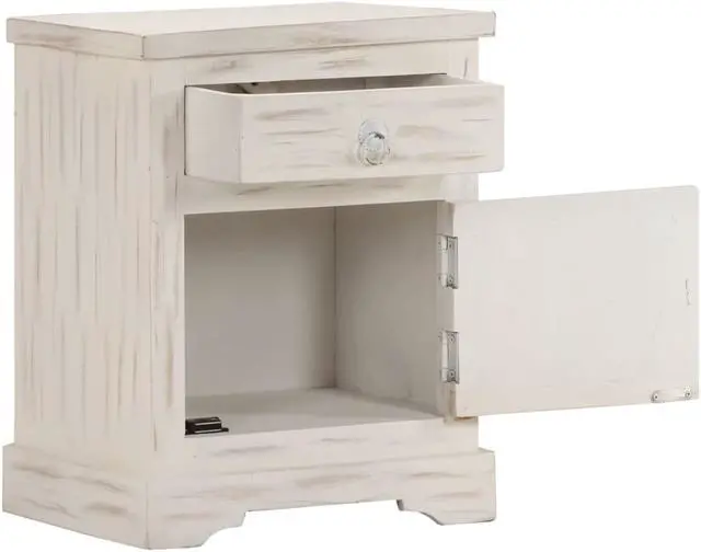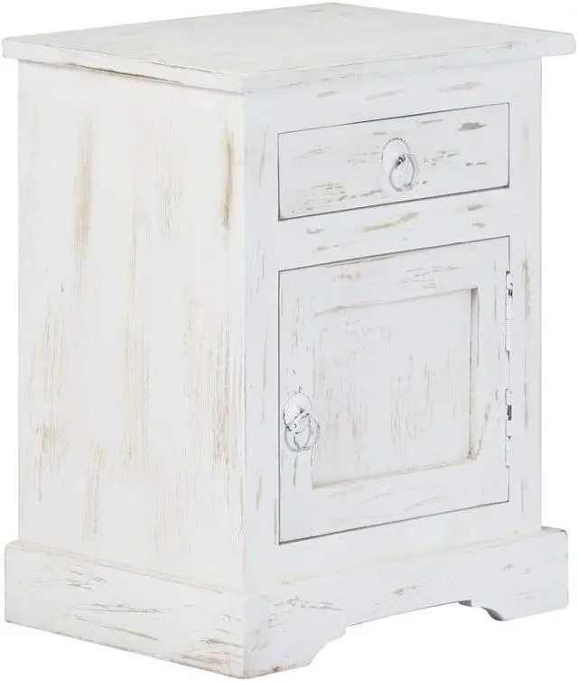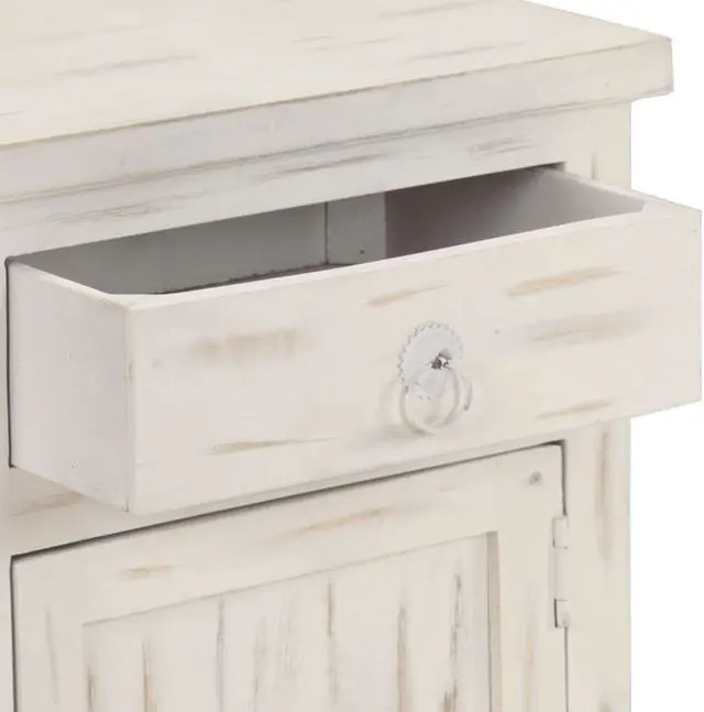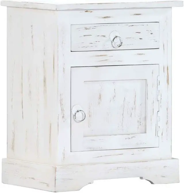 This wooden bedside cabinet exudes a vintage charm and will make a timeless addition to your interior.
