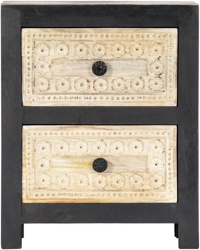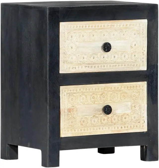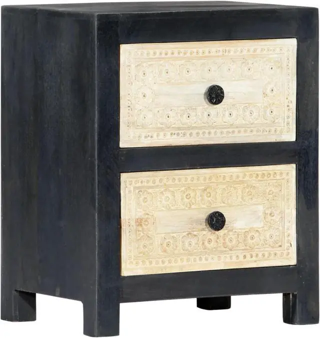 Made of solid mango wood, the nightstand has been given a beautiful finish by polishing, painting and lacquering, making it exude a refine look. The two drawers with hand craved pattern adds to the bedside cabinet's beauty while providing ample storage space for keeping your smaller items organized and within reach. Additionally, the bed drawer cabinet is easy to assemble and clean with a damp cloth.
