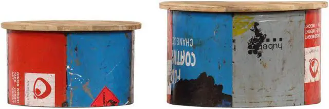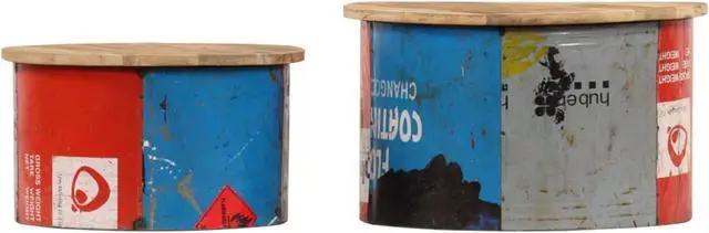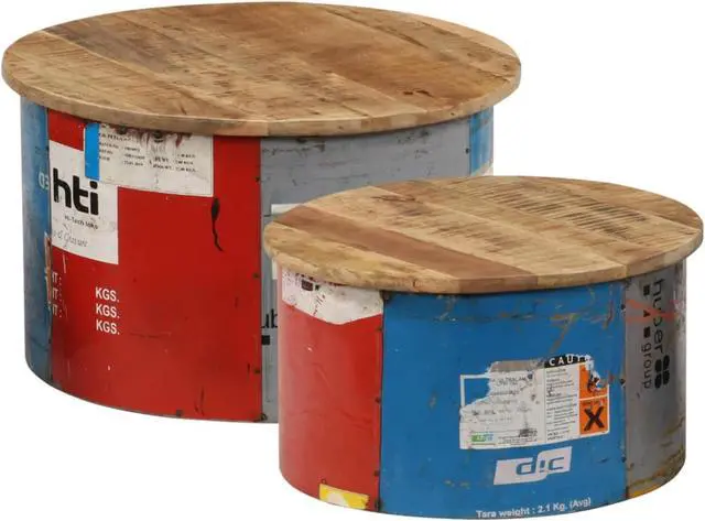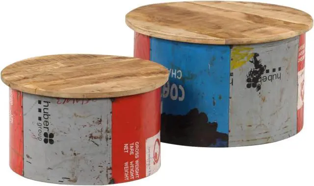 This rustic-style coffee table set exudes a quaint charm. It will definitely make a captivating addition to your interior. The tabletops are made of solid mango wood, a hardwood with dense grains. Rough mango wood not only has the strength to bear the weight, but also stands the wear and tear of time. Accordingly, this retro wooden couch table set is considerably stable, durable and eye-catching. These side tables are fully handmade and the refined wood grains enable every piece of furniture distinctive and slightly different from each other. Additionally, the old iron tin sheets add the living room tables' industrial style.
