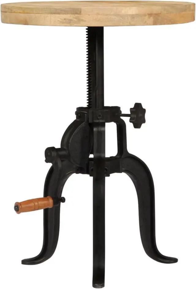 This wooden side table oozes a retro charm. It will surely make an eye-catching addition to your interior. This side table is made of solid mango wood, a hardwood with dense grains. Rough mango wood not only has the strength to bear the weight, but also stands the wear and tear of time. As a consequence, this retro couch table is highly stable, durable, as well as attention-grabbing. Additionally, powder-coated cast iron legs enable the coffee table considerably sturdy. Besides, this antique living room table is adjustable in height from 17.7" to 24.4".