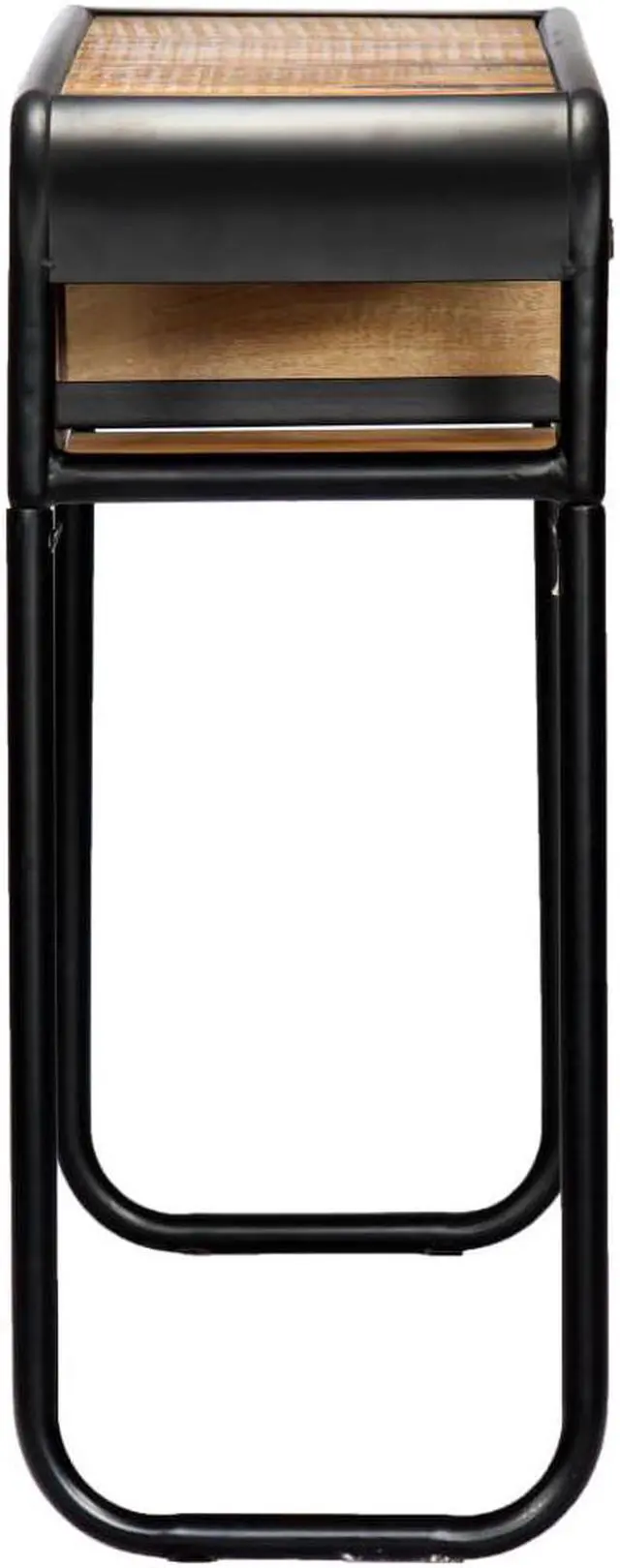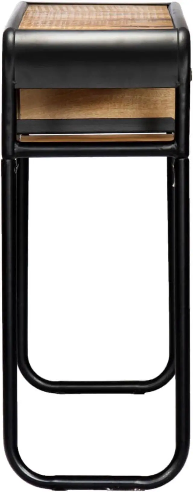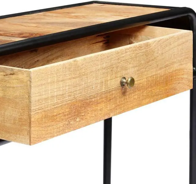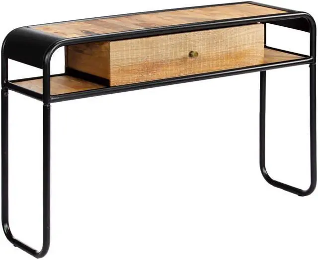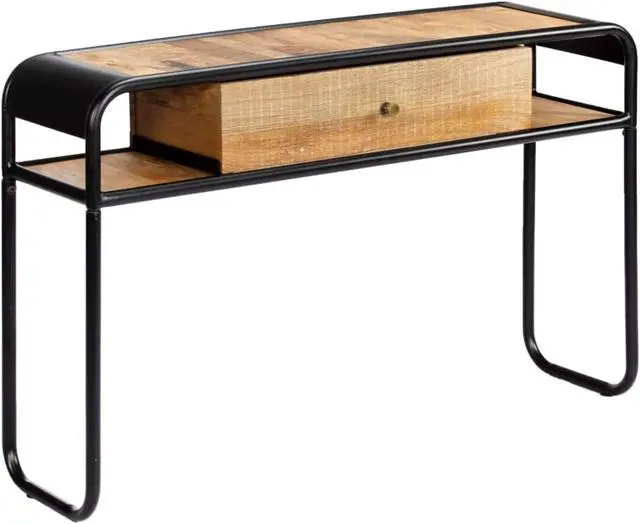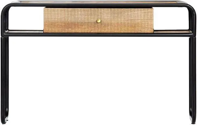 This wooden console table exudes a vintage charm and will be the center of attraction for your interior. Made of solid mango wood, this entryway table is exceedingly stable and durable. Mango wood is a dense and robust hardwood which has beautiful brown or golden streaks and contours on its surface. The powder-coated steel frame brings extra stability. Every step of the process is carried out with the greatest care, be it polishing, painting or lacquering. Additionally, this hall table features 1 drawer and 2 compartments, providing ample space for storing your multimedia devices, books, as well as various other items.