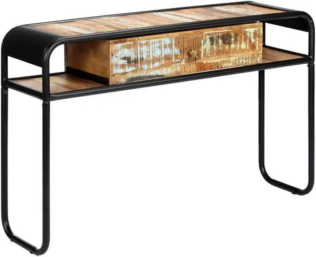 This wooden console table exudes a vintage charm and will be the center of attraction for your interior. This retro console cabinet is made of solid reclaimed wood that has been sourced from joists, floors and support beams from old buildings. It consists of different types of wood like pine, teak, beech, oak, cedar, mango wood, acacia, etc. This means the reclaimed wood retains the characteristics of these different types of wood. Reclaimed wood is already aged, weathered and dried, so it doesn't shrink or bend.