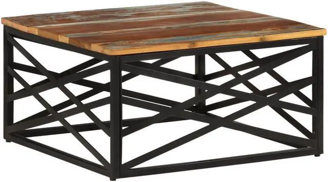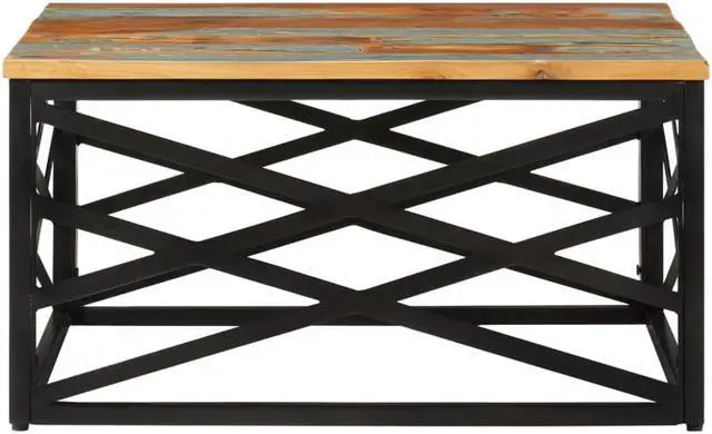 This wooden coffee table will make a timeless addition to your living room decor. This coffee table is handmade from solid reclaimed wood, a combination of reclaimed timbers including teak, mango wood, pinewood, beech, etc. These woods are recycled from old buildings such as factories, sheds and boats. This makes it a fantastic environmentally friendly option in furniture making. As every piece is handmade, colors vary with many blues, greens, creams and sometimes oranges, reds and pinks shades revealed. This even means each one is unique! Additionally, the table legs are constructed from robust cast steel which features its hardness and toughness that contribute to the table's stability as well as to its industrial design.