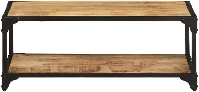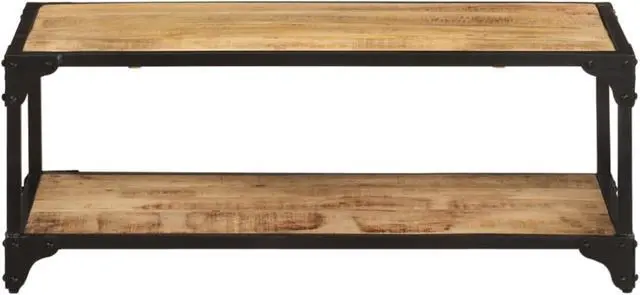 This vintage-style wooden coffee table makes a timeless addition to your home. Made of solid rough mango wood, this side table exudes an original look. The exquisite craftsmanship and the beautiful mango wood grains make every piece of furniture unique and slightly different from the next. Thanks to the strong iron frame, the coffee table is very steady and durable. The tabletop provides a stable and secure surface on which you can place your drinks, a fruit basket or vase or other decorative items. The shelf on the bottom provides ample space for storing multimedia appliances, books, magazines, and other items you want to keep within reach.