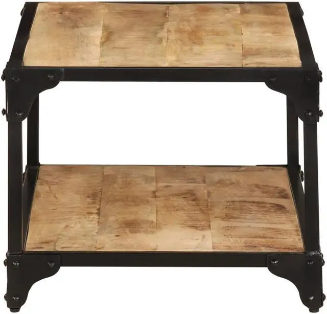 Material: Solid rough mango wood with a natural finish, black powder-coated iron