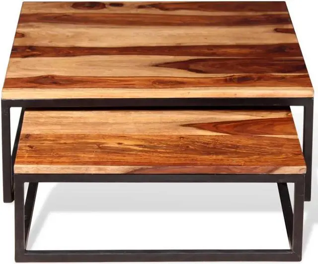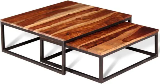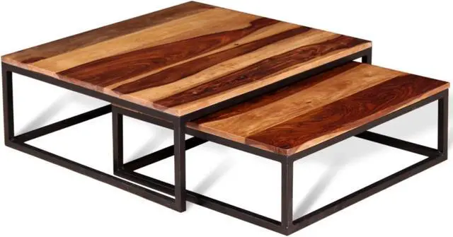 This two-piece nesting coffee table set is a stylish yet functional choice, crafted mainly from solid Acacia wood. Perfect for modern spaces, these tables showcase a lovely brown top and sleek black iron legs, making them a great addition to any décor.