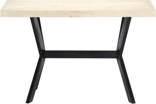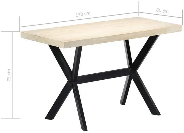vidaXL Dining Table White 47.2"x23.6"x29.5" Solid Mango Wood - 247442, This dining table exudes an modern style which will make a distinctive addition to your kitchen or dining room. Made of solid mango wood, this dining table is exceedingly stable and durable, and the exquisite craftsmanship adds to its spectacular modern style. The dining table is handmade and each step of the process is carried out with the greatest care, be it polishing or lacquering. Additionally, the steel legs complete the industrial look, along with the steel cross frame that contributes to the sturdy construction. Important note: The bleached mango wood shows natural grains, making each of the dining tables unique and slightly different from the next; the delivery is random.
