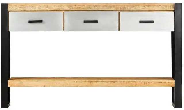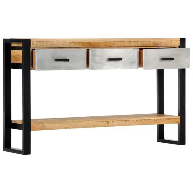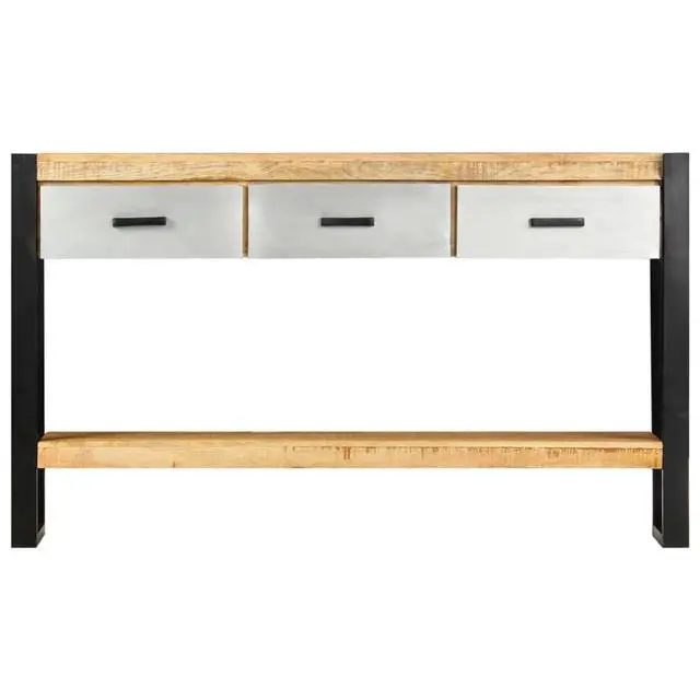vidaXL Console Table 51.1"x11.8"x29.9" Solid Mango Wood - 247762, Add a touch of elegance to your home d??cor with our classic wooden console table! Made of solid mango wood, this console table will make a great addition to your interior. It can be used as a side table, sideboard, hall table, table under mirror, etc. Made of solid rough mango wood, the table has a sturdy tabletop, on which you can place decorative items like fruit baskets or vases. Sturdy metal legs guarantee its stability and durability, ensuring years of service. Mango wood is a dense and robust hardwood which has beautiful brown or golden streaks and contours on its surface. Every step of the process is carried out with the greatest care, be it polishing, painting or lacquering. Additionally, it includes 3 drawers and bottom rack, providing ample space for keeping all kinds of smaller items or other essentials organized and within easy reach. Important note: colors vary from piece to piece, making each of our console table unique; the delivery is random.