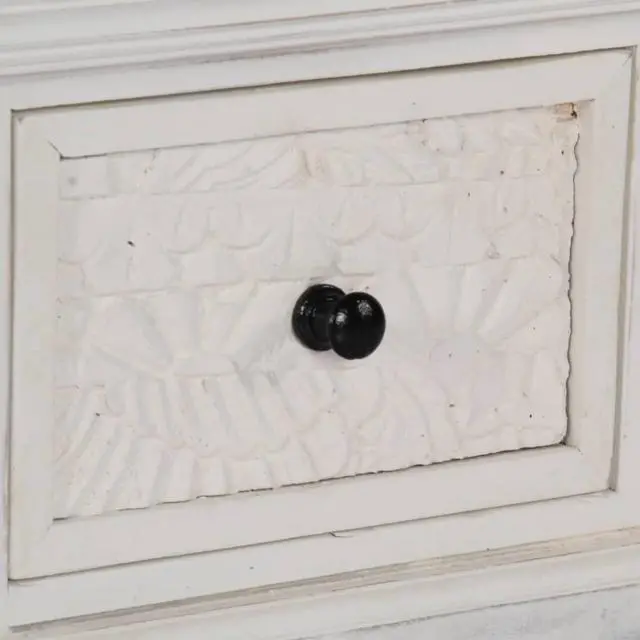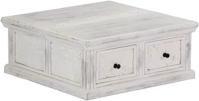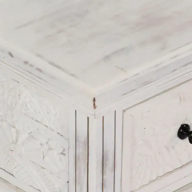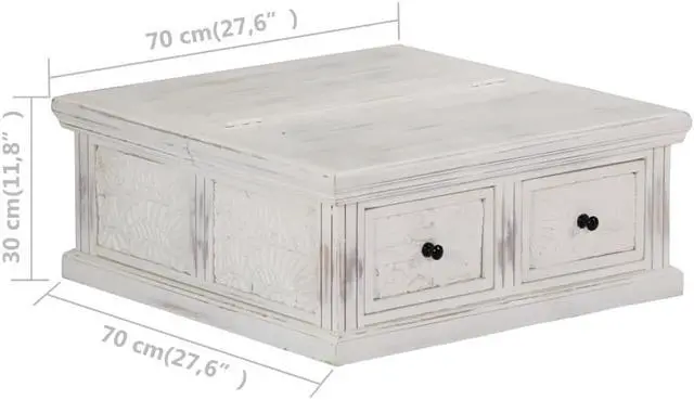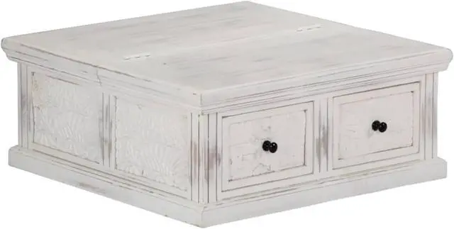 This rustic coffee table is made of solid mango wood and shows off a lovely white finish, adding elegance and warmth to your living room.