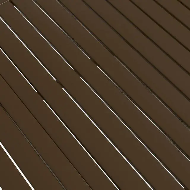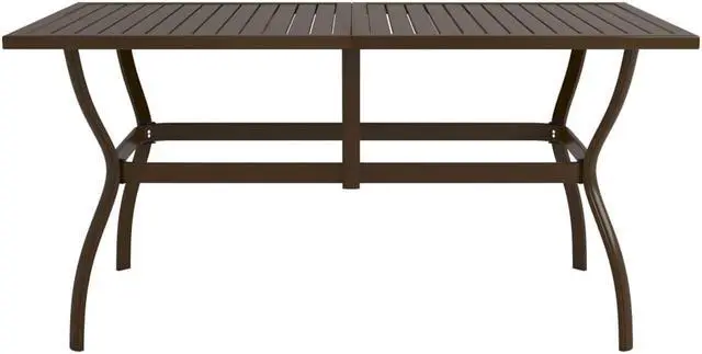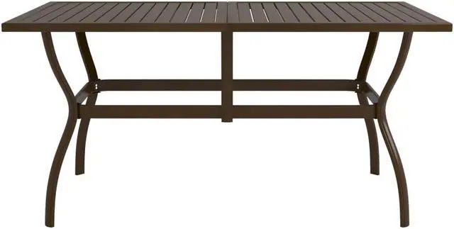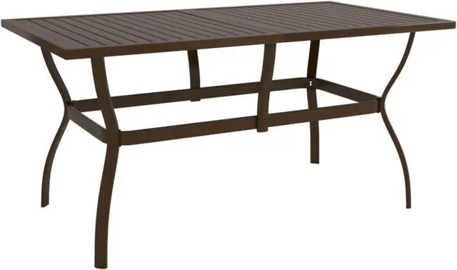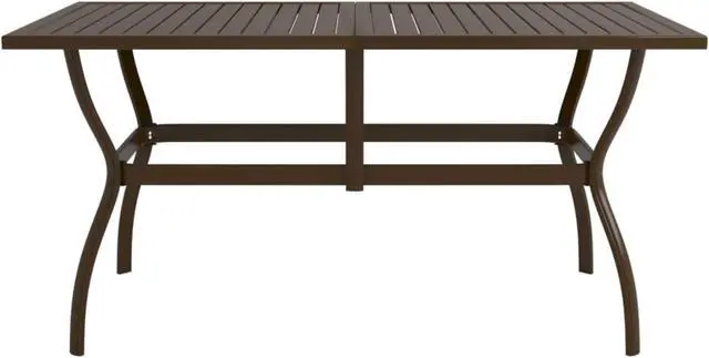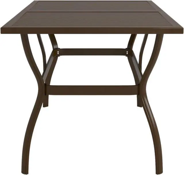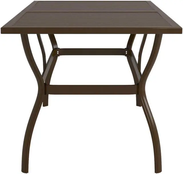 This stylish patio table featuring a slatted design adds a touch of industrial style to your patio living space. This patio table is made of powder-coated steel, making it sturdy and stable.