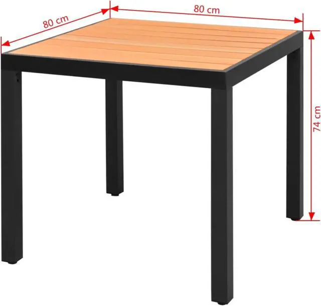 The table top is made of high-quality WPC, which is weather-resistant and durable. The powder-coated aluminum frame makes the table strong and sturdy. Assembly is easy.