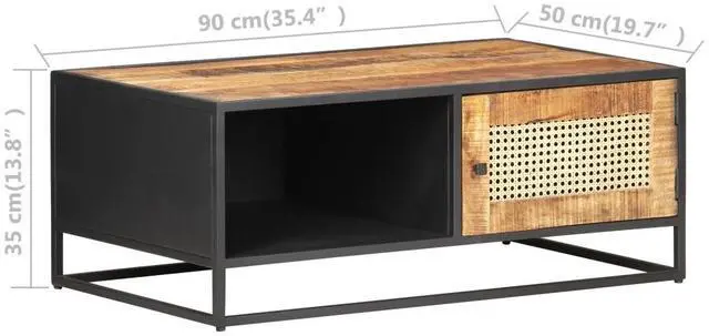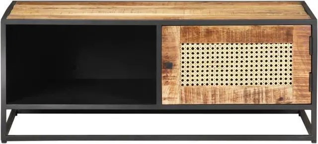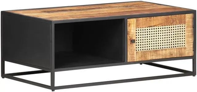 If you're looking for a simple touch of rustic charm to add to your interior decor, this solid mango wood coffee table is here! Solid mango wood is a tropical hardwood. It on the one hand has the strength to bear the weight, and on the other hand stands the wear and tear of time. Additionally, the exquisite craftsmanship and beautiful wood grains make every piece of couch tables slightly different from the next. The side table is equipped with ample storage room, so you can display or keep any items you'd like well organised. The iron frame contributes to its sturdiness and stability. What's more, the end table features a hand-woven cane pattern on the door, adding to its rustic charming. Important note: The colours vary from piece to piece, making each wooden living room table unique.
