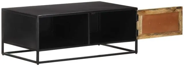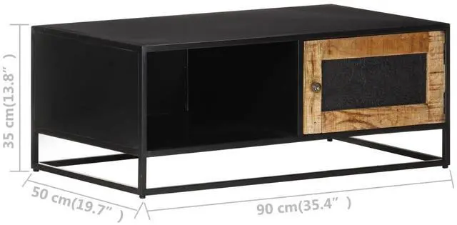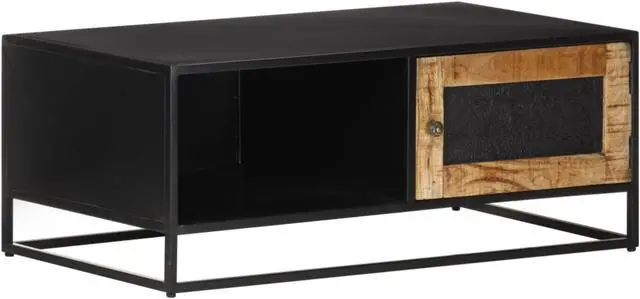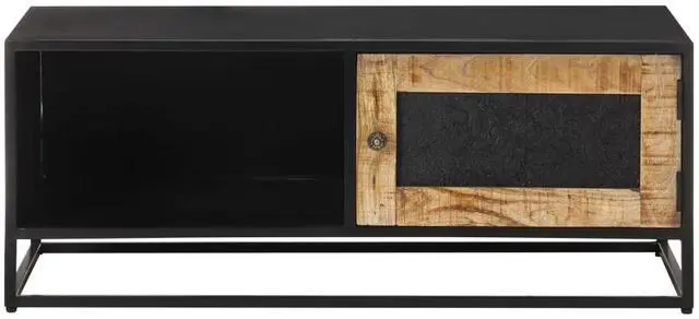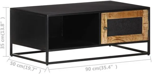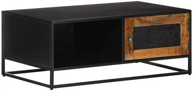 This wooden coffee table adds an industrial look and is a perfect choice for your existing living space. This accent table is handmade out from rough mango wood, a tropical hardwood with the strength to bear the weight. It also stands the wear and tear of time, making it stable and durable. The powder-coated iron frame also adds extra stability. This couch table also features a door with hand carved pattern and a compartment providing ample storage space to keep your item organised and within reach. Important note: Colours and grains vary from piece to piece, making each piece unique; the delivery is random.