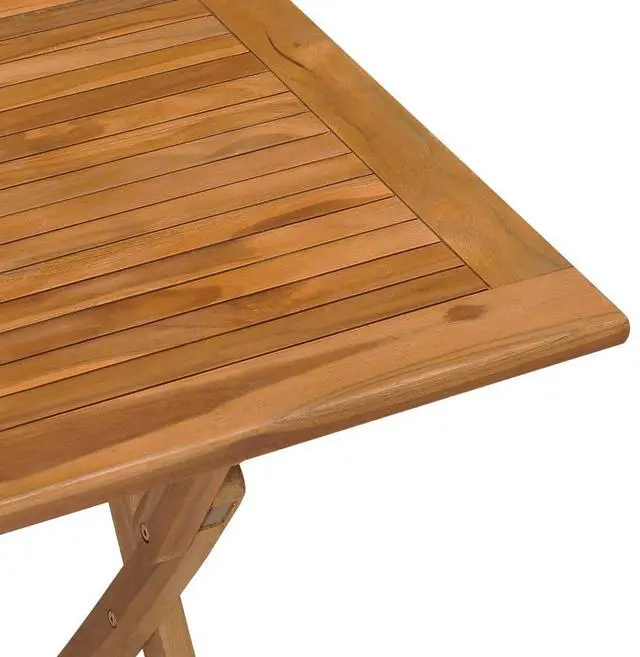 Looking for something more refined and eye-catching for your outdoor space? This wooden dining table is an optimal choice for you! Constructed from extremely durable teak hard wood, this piece of teak furniture has been seasoned, kiln dried and then fine sanded to give a very smooth appearance. Teak wood is known for its exceptional strength and weather resistance, making it far more suitable for garden furniture than any other kind of wood. Teak wood is the perfect choice if you want to purchase a long lasting piece of garden furniture. Thanks to the folding design, the garden table can be easily folded to save space when not in use. Note: In order to extend the life of your outdoor furniture, we recommend you to clean it regularly and do not leave it outdoors without protection unnecessarily.Clean: Use a mild soap solution.Storing: If possible, store in a cool, dry place indoors. If the product is stored outdoors, protect it with a waterproof cover. Wipe and dry the excess water or snow from flat surfaces after a rain or snowfall. Allow sufficient air circulation to avoid moisture-related damage.