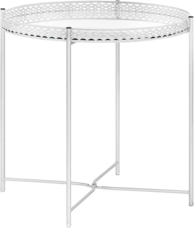 This simplistic side table adds a modern look and enhances your existing interior decor and living space. The accent table features a mirror tray and steel wire frame, making it stable and durable. This tray can be used to hold your drinks or snacks. It also serves as an end table, couch table and living room table etc.