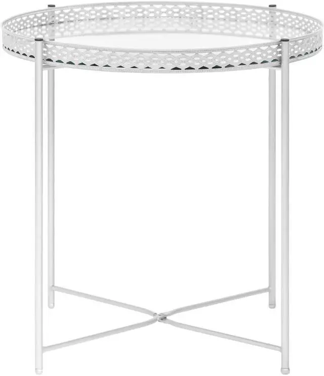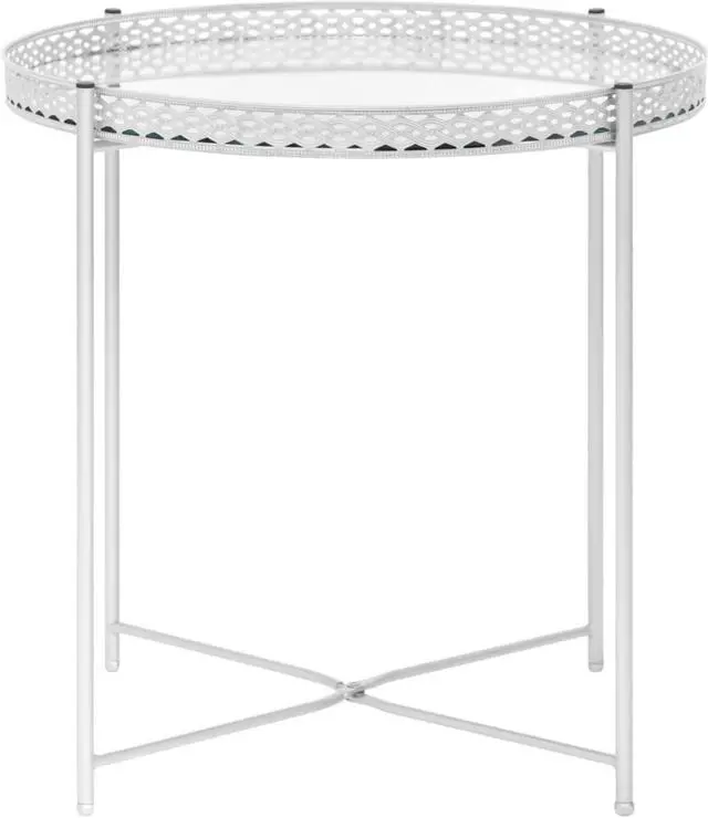Features a mirror tray tabletop