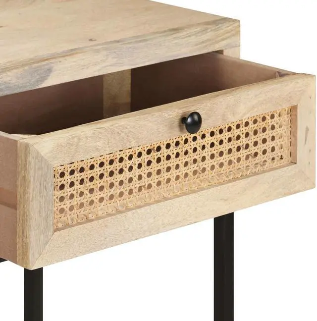 Material: Solid mango wood with a bleach finish, natural cane, powder-coated steel