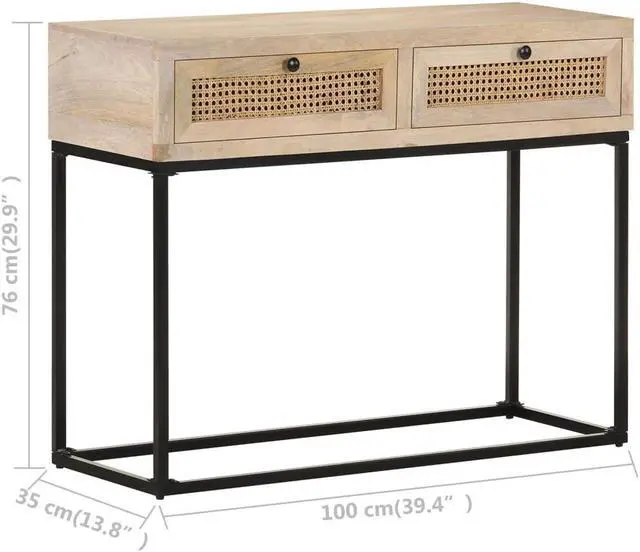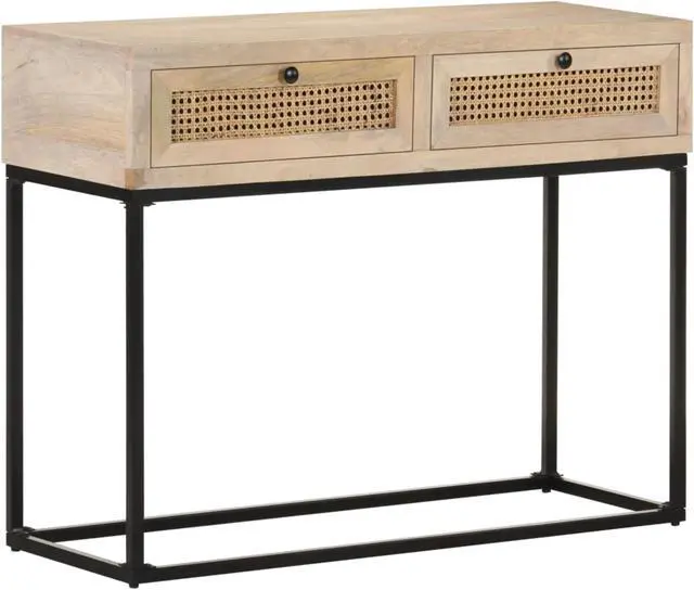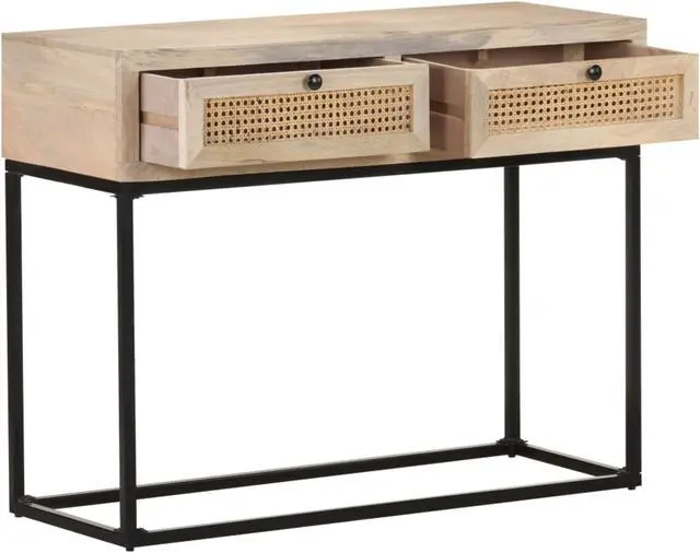 The steel base contributes to its sturdiness and stability. What's more, the table for under mirror features hand-woven cane patterns on the drawers, adding to its rustic charming.