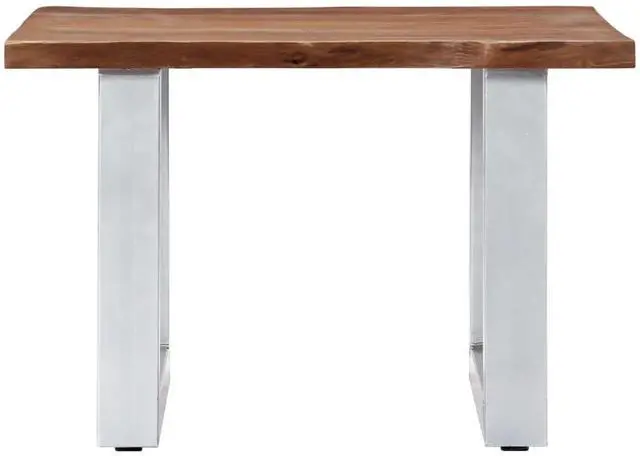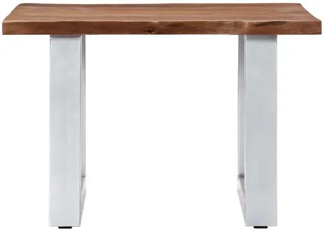 This wooden coffee table features a cool, industrial style and will make a great addition to your home or office. The tabletop is made of sturdy, solid acacia wood. Its unique, U-shaped, powder-coated metal legs add to the industrial style and make the table exceedingly stable. Additionally, the wood's live edge that follows the natural shape of the tree increases the beauty of the table. The coffee table is easy to assemble. Please note that wood is a natural product and may show imperfections.